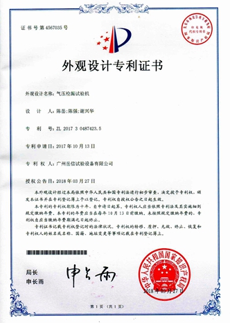 氣壓檢漏試驗(yàn)機(jī)-外觀專利證書(shū)【岳信公司】